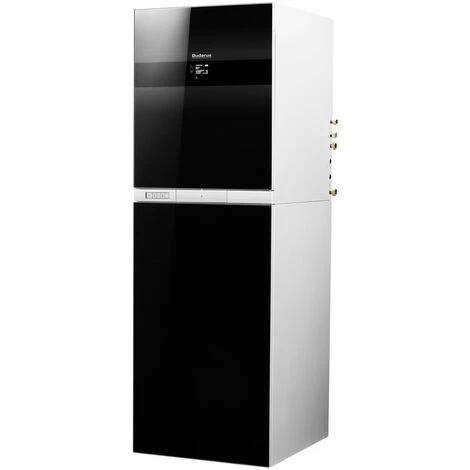 Budreus Gas-Brennwert-Kompaktheizzentrale Logamax plus GB192iT 15 kW mit bivalentem Schichtladespeicher für Solarbetrieb 210l, schwarz
