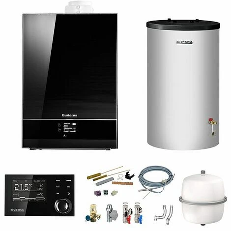 Das Gasbrennwert-Gerät lässt sich im Buderus System jederzeit erweitern, z. B. mit Pufferspeichern für regenerative Energien wie Sonnenkraft oder Festbrennstoffe wie Holz oder Pellets. Für die Ergänzung der Gasheizung um einen Warmwasserspeicher stehen je nach Warmwasserbedarf die Wasserspeicher Logalux S120, SU160/5, SU200/5 und SU300/5 zur Verfügung. Abgestimmte Bedieneinheiten sind die Systembedieneinheit Logamatic RC310 und die Bedieneinheit Logamatic RC200.
