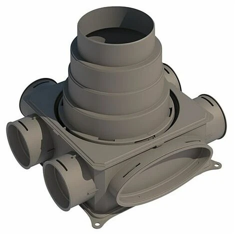 - Hauptleitungsanschluss lose im Lieferumfang, Montage an Ober- oder Unterseite möglich: DN125, DN150, DN160, DN180