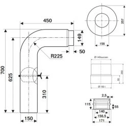BUDERUS Abgasrohr-Bogen 90° Ø 150 Mm Für Kaminofen – Gussgrau, Glatt Mit Tür – 7747024310